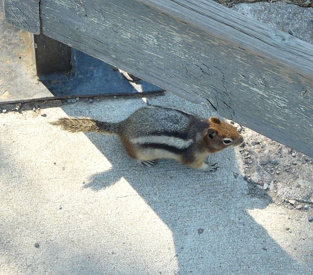 Ben bewunderte den Cameron-Wasserfall in der Nähe des Dorfes und genauso intensiv das freche Streifenhörnchen davor.