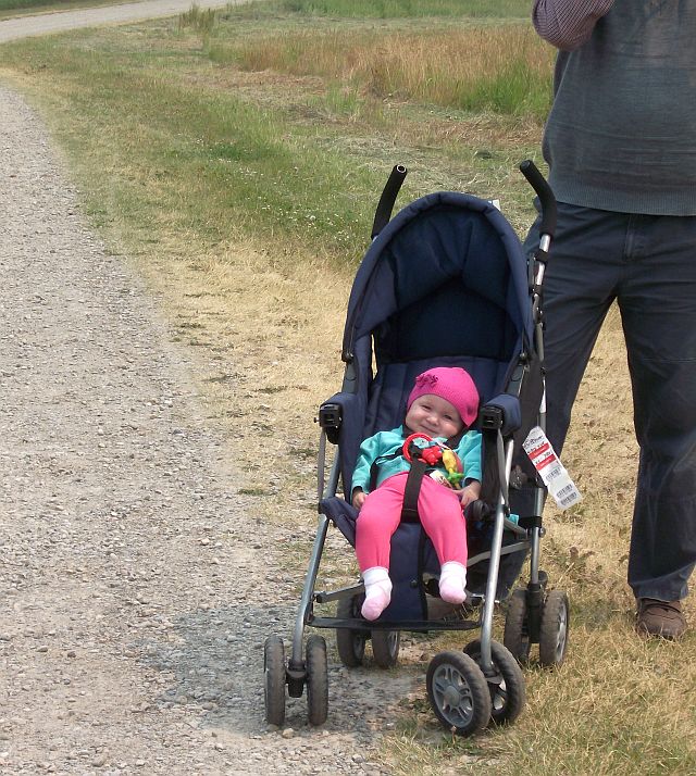 Natürlich mussten wir uns an Mias Rhythmus halten: essen, schlafen, Windel füllen. Also gabibt es irgendwo auf dem Weg eine Raubtierfütterung: