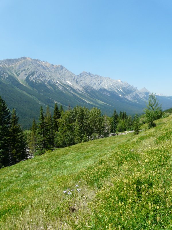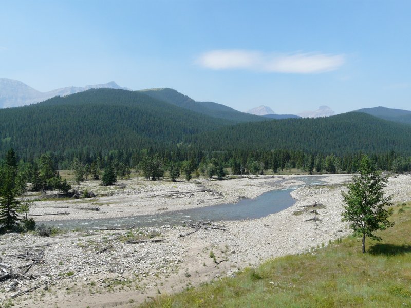 Dann mal los (hier die Route). Über Longview fuhren wir zum Highway 40, dem Teil, der Kanasaskis-Trail heißt. Wir durchfuhren wunderschöne Landschaften bis über 2000m Höhe (Highwood-Pass, 2200m). Hier ein schönes Luftbild.