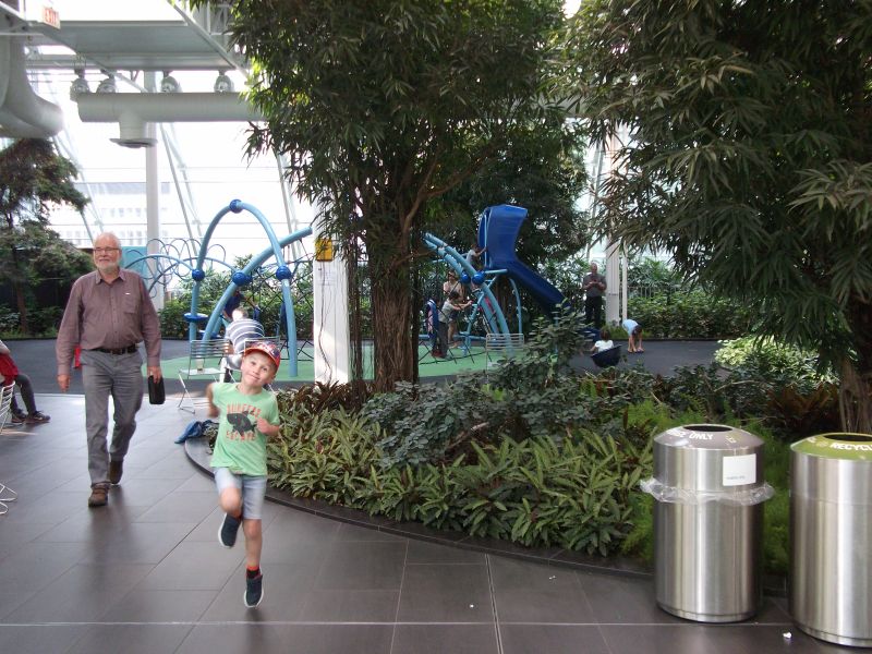 Erst einmal wurde der Hunger im Pizza Hut gestillt. Dann verlockte der Innenpool des Hotels zum Plantschen. Ben traute sich sogar mit Opi, die Rutsche auszuprobieren.