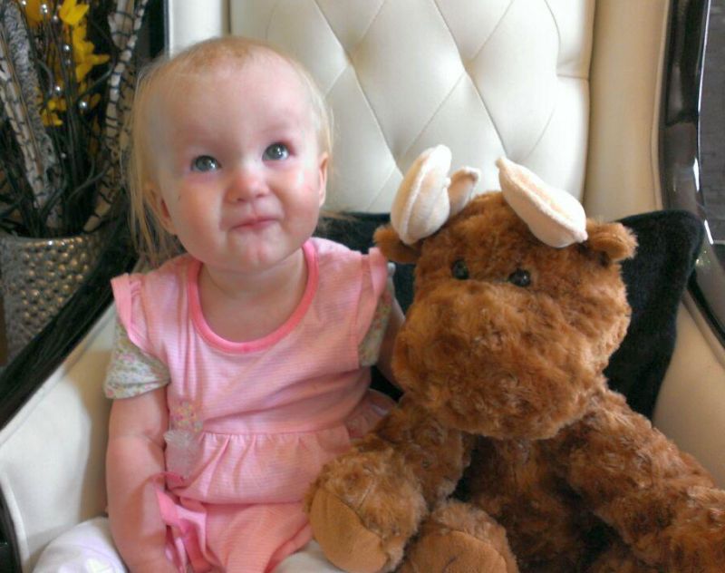 Hier die stolze Mia mit ihrem Moose (Elch).