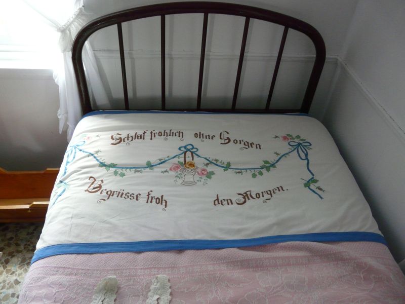 ...das Bett mit den Sinnsprüchen.