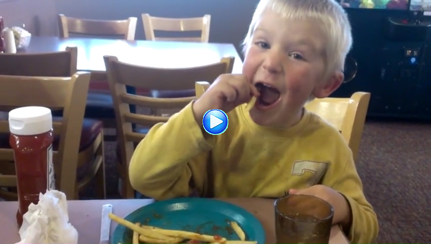 Also rein ins "Bonanza": da gab es ein Buffet, an dem man sich nach Lust und Laune bedienen konnte. Und Lukas hatte das (passende?) T-Shirt an, auf dem sich ein Großteil des Ketchups wieder fand, sofern der sich nicht irgendwo kunstvoll in seinem Gesicht niedergelassen hatte.