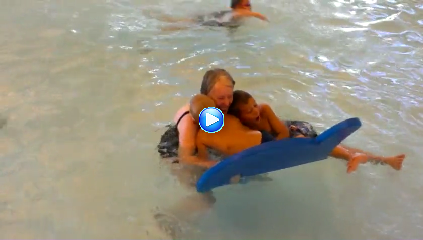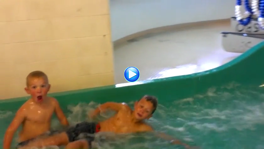 Nach der Stärkung: ab ins Bad! Die zwei Jungen nutzten die Stunden aus, um lustvoll im Wasser zu tollen, die lange Wasserrutsche hinunter zu sausen und mit uns herum zu toben.