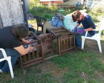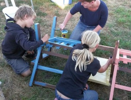 An diesem Tag starteten wir unser nächstes "Großprojekt". Wir wollten mit den Kindern eine originelle Bank neu streichen. Große Begeisterung bei den Kindern! Die passenden Farben hatten wir mit ihnen zusammen schon ausgesucht und gekauft. Doch leider stand vor dem Streichen noch das lästige Abschleifen. Bedauerlicher Weise mussten wir alles von Hand machen; eine Maschine hätte uns nicht geholfen.