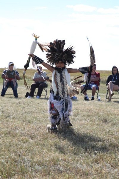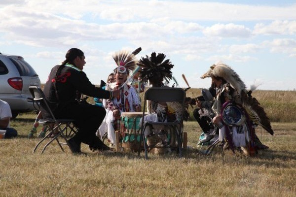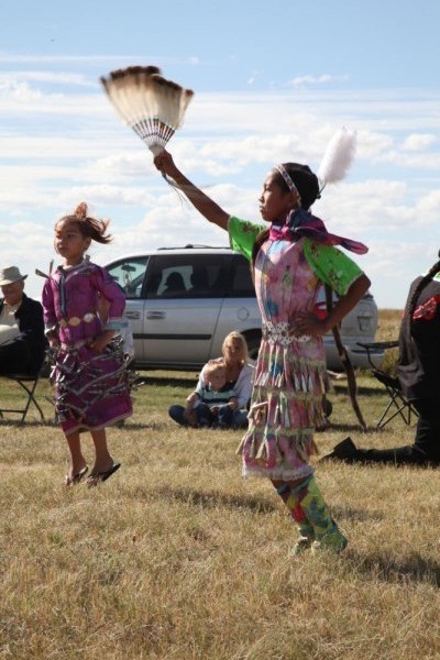 Am Nachmittag sahen wir Indianertänze. Vorgeführt wurden sie von einem Indianer (er arbeitet jetzt als Lehrer in Regina) und seinen ACHT (!) Kindern.