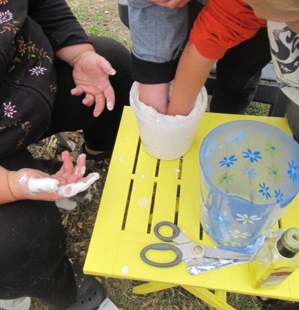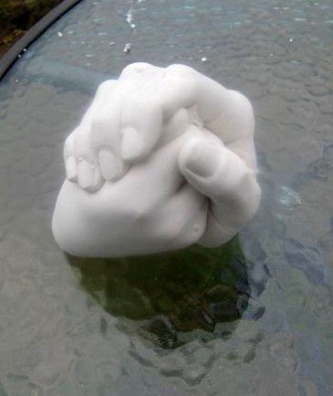 Heike hatte die orginelle Idee, von Patentante Judith und Patensohn Florian eine Handskulptur aus Gips zu machen. Das Ergebnis sah erstaunlich realistisch und schön aus.