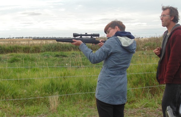 In Kanada ist es üblich, dass jeder Farmer/Rancher einen Waffenschein und Jagdgewehre besitzt, um zum einen seinen Besitz besser vor z.B. Kojoten zu schützen, aber auch um ein eigenes krankes Tier von seinen Qualen zu erlösen. Zu bestimmten Jahreszeiten darf man mit entsprechender Jagderlaubnis auch für das freilaufende Wild auf die Pirsch gehen. Inzwischen hat Wolfgang selber Schein und Waffen, die er nun Judith zeigte. Sie konnte sich nicht vorstellen, wie man mit diesen schweren Waffen zielen und treffen konnte. Daraufhin sind Bruder und Schwester in den hintersten Winkel des Yard gegangen und haben auf Flaschen geschossen. Judith hat sogar einmal getroffen, war aber noch länger etwas taub auf den Ohren.