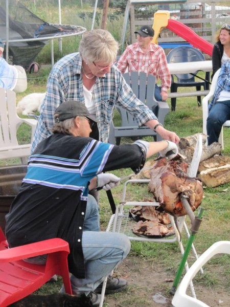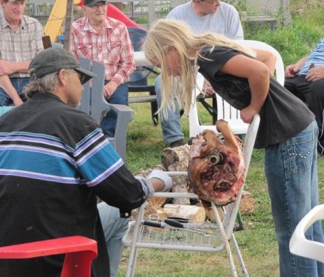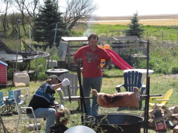 Jetzt strahlte der Himmel wieder. Die Jungs waren nach ihrer Freizeit bei der Oma in Assiniboia und wollten nicht mit auf die Ranch. Besonders Florian hatte verständlicherweise keine Lust. Warum? Er hat die Pflege der Schweine übernommen. Heute sollte eines seiner Ferkel geschlachtet werden, denn für Samstag hatten Heike und Wolfgang zum Spanferkelessen geladen.