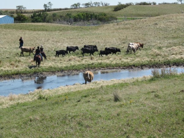 Bei dieser Gelegenheit wollte Heike auch nach ihren Kühen sehen. Doch an "sehen" war nicht zu denken, da sich die Tiere in den hintersten Winkel zurückgezogen hatten. Daraufhin sind die Reiter erst einmal auf Suche geritten und haben die Tiere in den vorderen Bereich getrieben.
