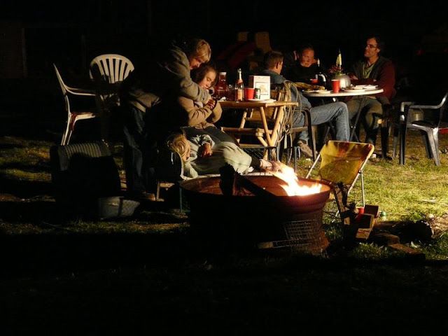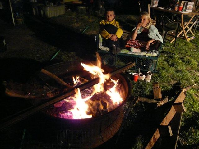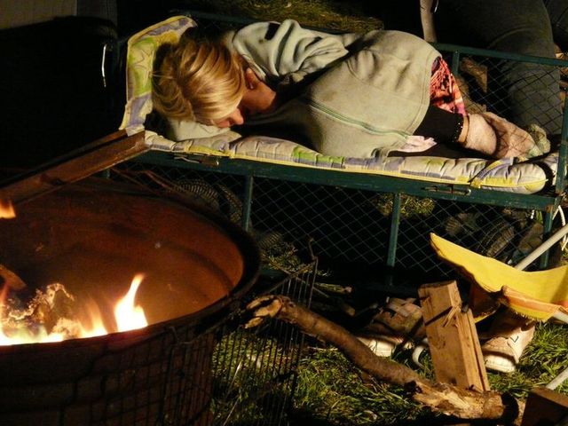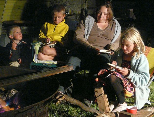 Am Feuer machten es sich die Kinder gemütlich und nutzten es aus, dass sie noch nicht ins Bett mussten; man kann ja auch am Feuer schlafen.