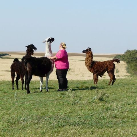 Ebenfalls zum Wachpersonal gehören die Alpakas, die stets alles im Blick behalten, ohne sich aus der Ruhe bringen zu lassen. Sie bekämpfen auch die Kojoten, wenn nötig.